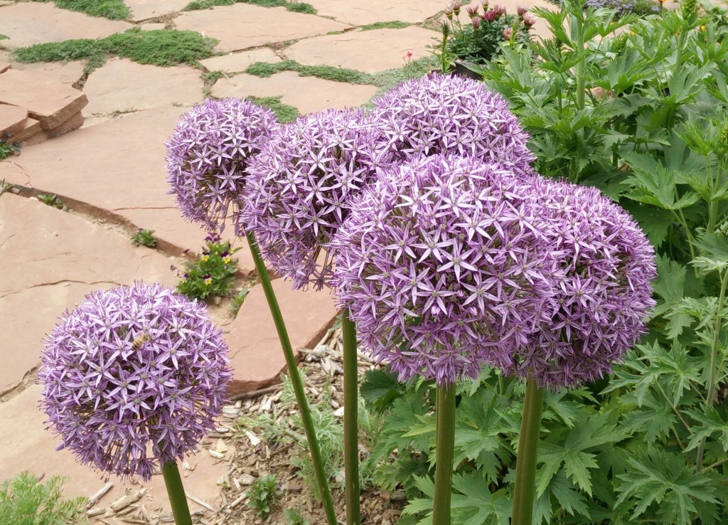 Allium come in many varieties. Micro to macro, shades of pink to purple, dense to wispy. Giant allium variety pictured.
