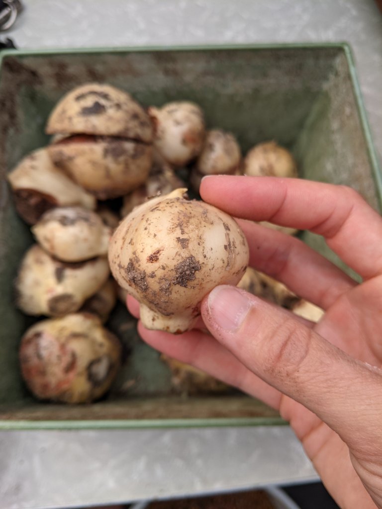 Close up of the bulb. This fleshy orb will turn into so much more! It’s best to keep bulbs that didn’t sustain any damage while digging.