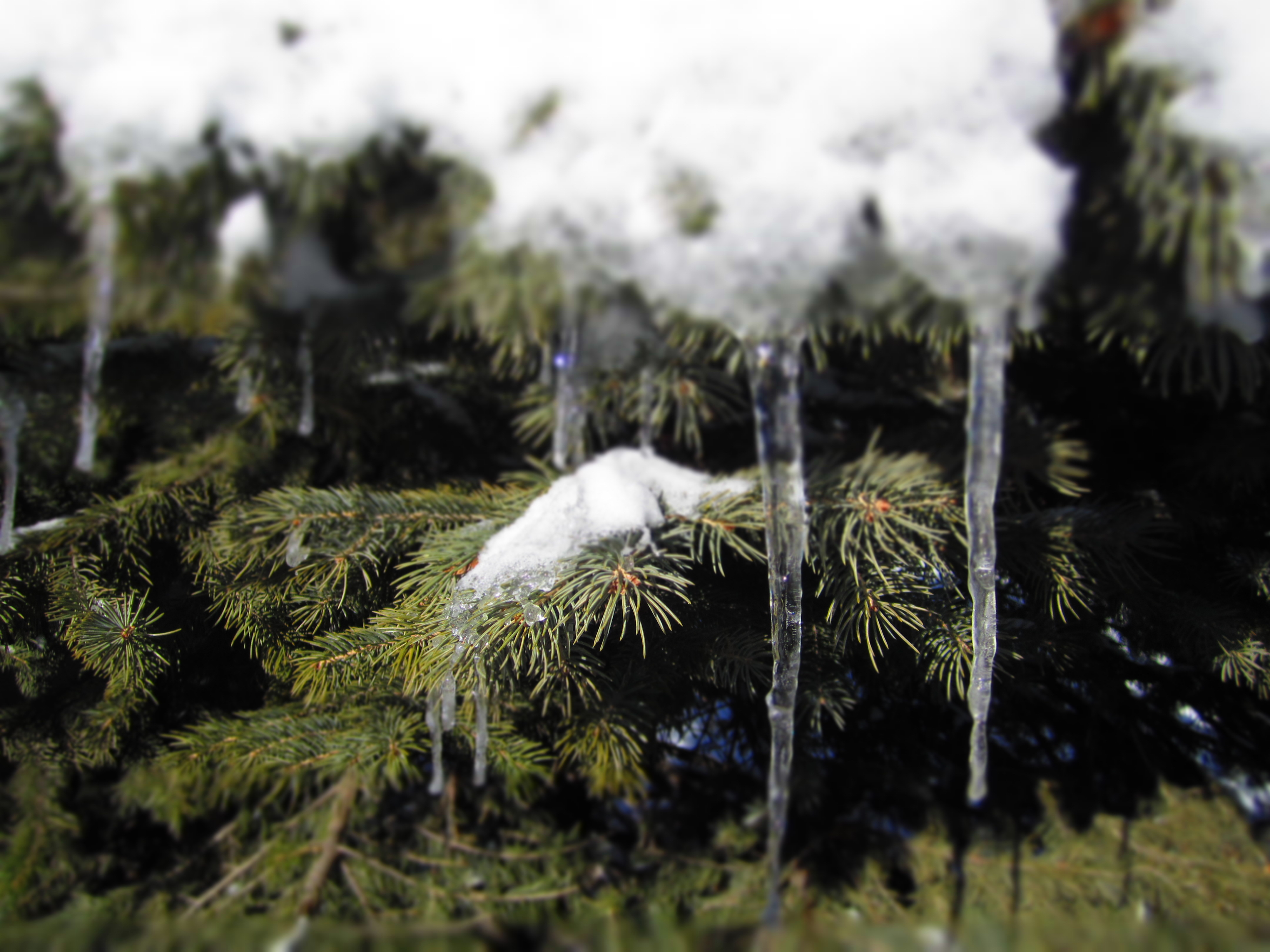 Bitter cold created sparkling white glitter. While warmer temperatures brought snowcone slush. Gravity worked on the moisture, forming delicate daggers dripping so slowly that my camera could not catch them.